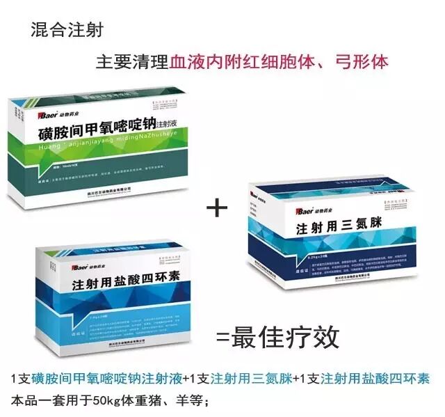 【适应症状】本品对家畜的附红细胞体、焦虫等类血液原虫均有作用。同时,本品采用特殊工艺,降低三氮脒的毒副作用,用药后血中浓度高,安全可靠。