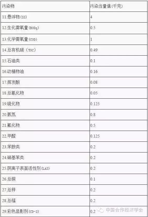 第二类水污染物污染当量值